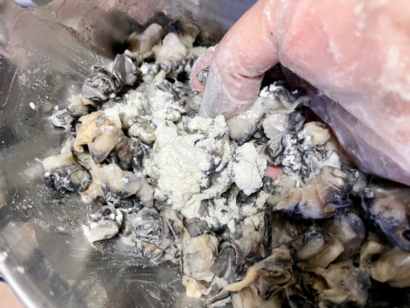 *저는 밀가루 두 스푼을 한 번에 다 넣지 않고 두 번에 나누어 여러 번 씻어주었습니다.