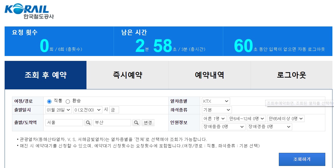 ์ด์ /๊ฒฝ๋ก, ์ด์ฐจ ์ข ๋ฅ, ์ถ๋ฐ์ผ์, ์ข์์ข ๋ฅ, ์ถ๋ฐ/๋์ฐฉ์ญ, ์ธ์ ์ ๋ณด๋ฅผ ์ ํํ์ฌ ์กฐํ ํ ์๋งค, ๊ฒฐ์ ๋ฅผ ํ๋ฉด ๋.