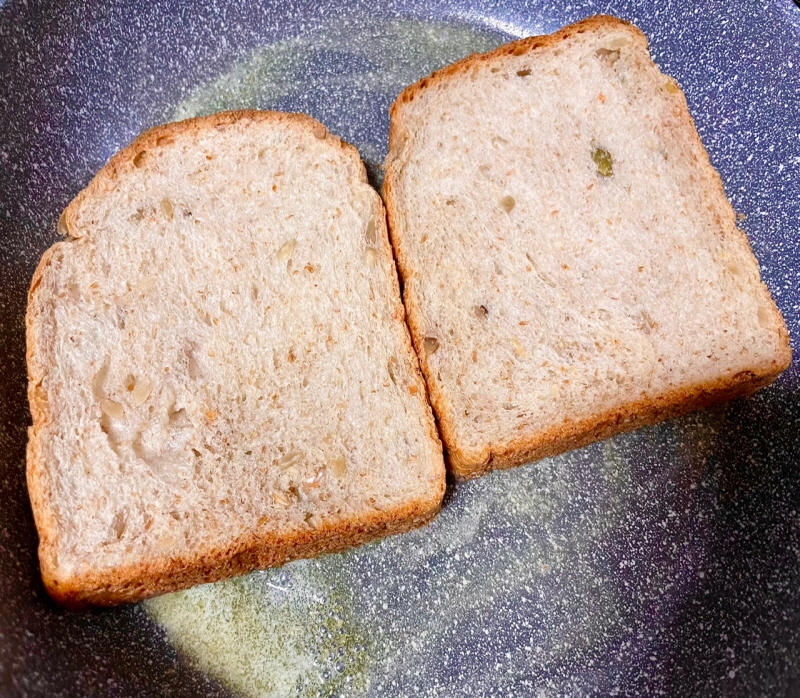 2. ํ๋ผ์ดํฌ์ ๋ฒํฐ 1์คํผ์ ๋ฃ๊ณ ํต๋ฐ ์๋นต 2์ฅ์ ๋ ธ๋ฆํ๊ฒ ๊ตฌ์์ค๋๋ค. ์กฐ๊ธ ๋ฐ์ญํ๊ฒ ๊ตฌ์์ค๋ ์ข์ต๋๋ค. ๋ค ๊ตฌ์์ค ์๋นต์ ๊ทธ๋ฆ ๋ฐ๋ฅ์ ๊ทธ๋ฅ ๋์ง ์๊ณ ํ๊น ๋ฐ์นจ ์์ ์ฌ๋ฆฐ ๋ค ์ ์ ๋ก๋๋ค. (๋ ๋ ํด์ง์ง ์๊ฒ ํ๊ธฐ ์ํจ์ ๋๋ค)