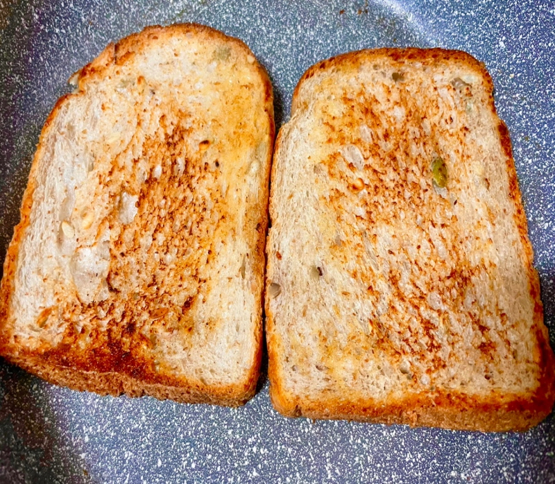 2. ํ๋ผ์ดํฌ์ ๋ฒํฐ 1์คํผ์ ๋ฃ๊ณ ํต๋ฐ ์๋นต 2์ฅ์ ๋ ธ๋ฆํ๊ฒ ๊ตฌ์์ค๋๋ค. ์กฐ๊ธ ๋ฐ์ญํ๊ฒ ๊ตฌ์์ค๋ ์ข์ต๋๋ค. ๋ค ๊ตฌ์์ค ์๋นต์ ๊ทธ๋ฆ ๋ฐ๋ฅ์ ๊ทธ๋ฅ ๋์ง ์๊ณ ํ๊น ๋ฐ์นจ ์์ ์ฌ๋ฆฐ ๋ค ์ ์ ๋ก๋๋ค. (๋ ๋ ํด์ง์ง ์๊ฒ ํ๊ธฐ ์ํจ์ ๋๋ค)