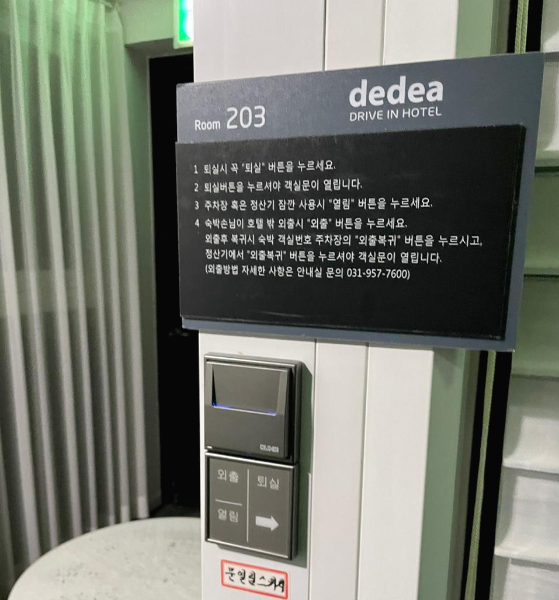 외출할 때는 안내문을 잘 읽어보시고 외출버튼을 누르시면 됩니다.